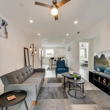 O apartamento Metro View 2Br I Parking I King Bed I Workspace dispõe de cozinha equipada com forno e máquina de lavar loiça. Os hóspedes também podem pegar um autocarro na estação de autocarros E, situada a 550 metros de distância para explorar o resto de Dallas. Os hóspedes podem relaxar no seu pátio.